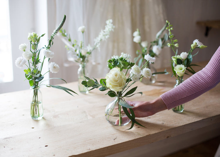 Bud vases can be hired out or bought for you to keep (and give out to guests as presents!)