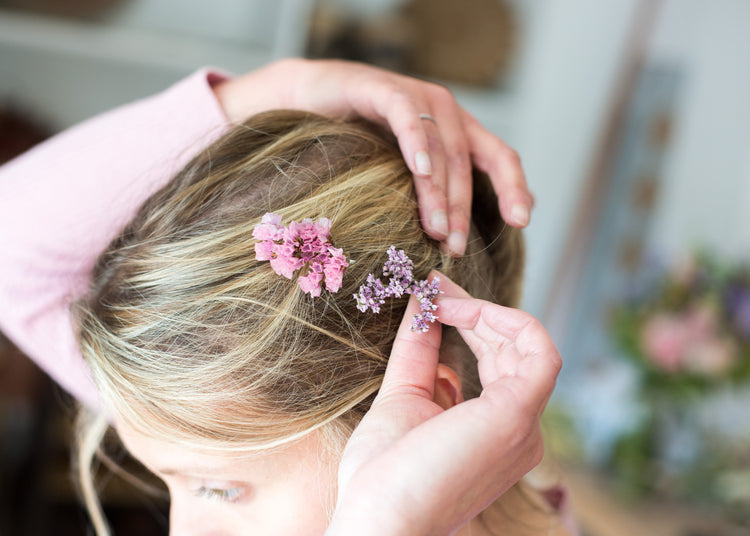 Individually wired pastel coloured flowers which can be pinned into hair with a grip or pins. We provide 7 - 9 flower heads which can be separately placed into your hair.