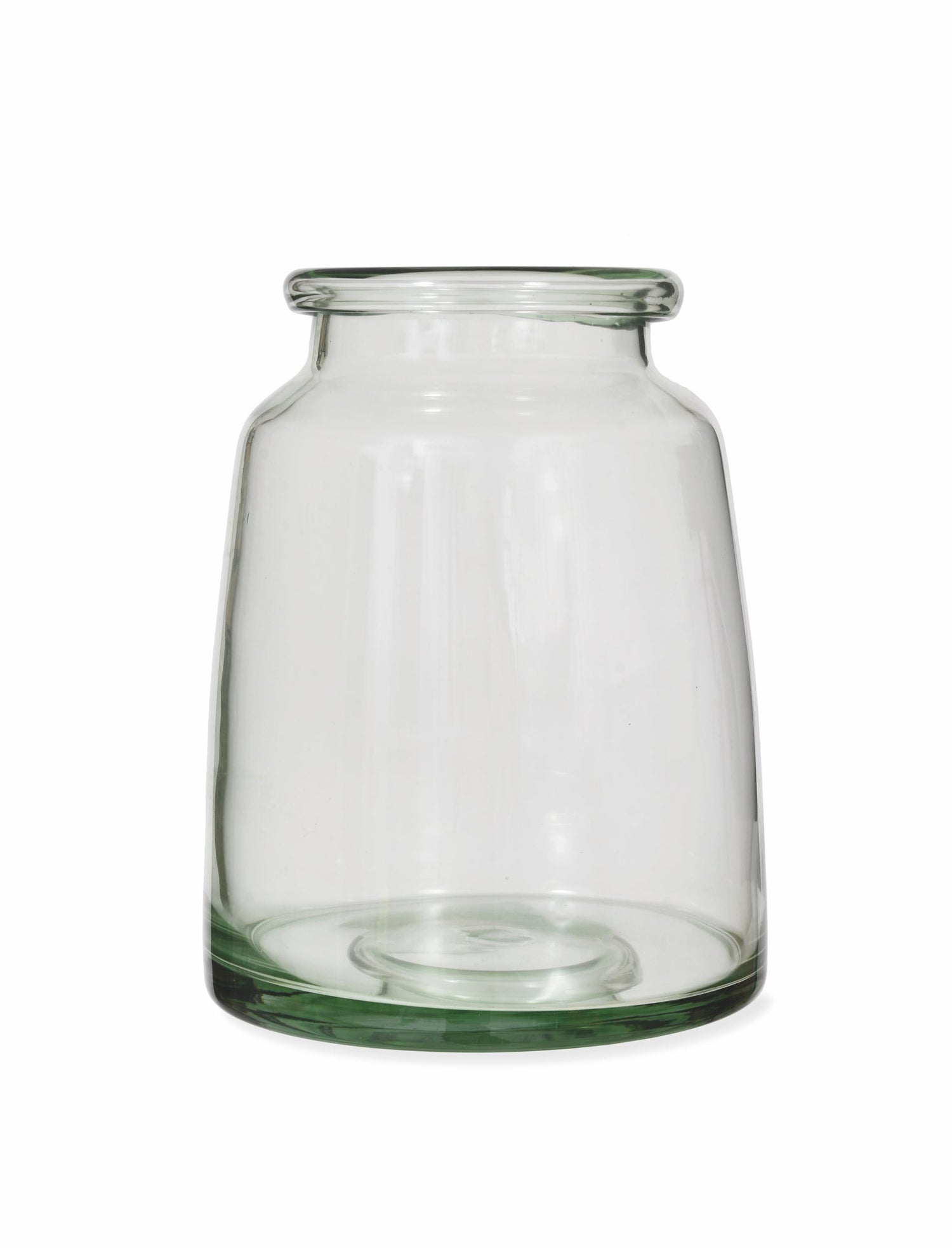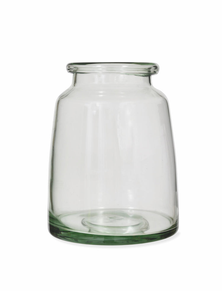 By Garden Trading, this sturdy vase has been made using recycled glass and with the shape of old pickle jars in mind. With a rolled rim and a heavy, wide base this is perfect for arranging medium to large bunches of flowers in. It tapers in at the neck which holds your stems in place perfectly.