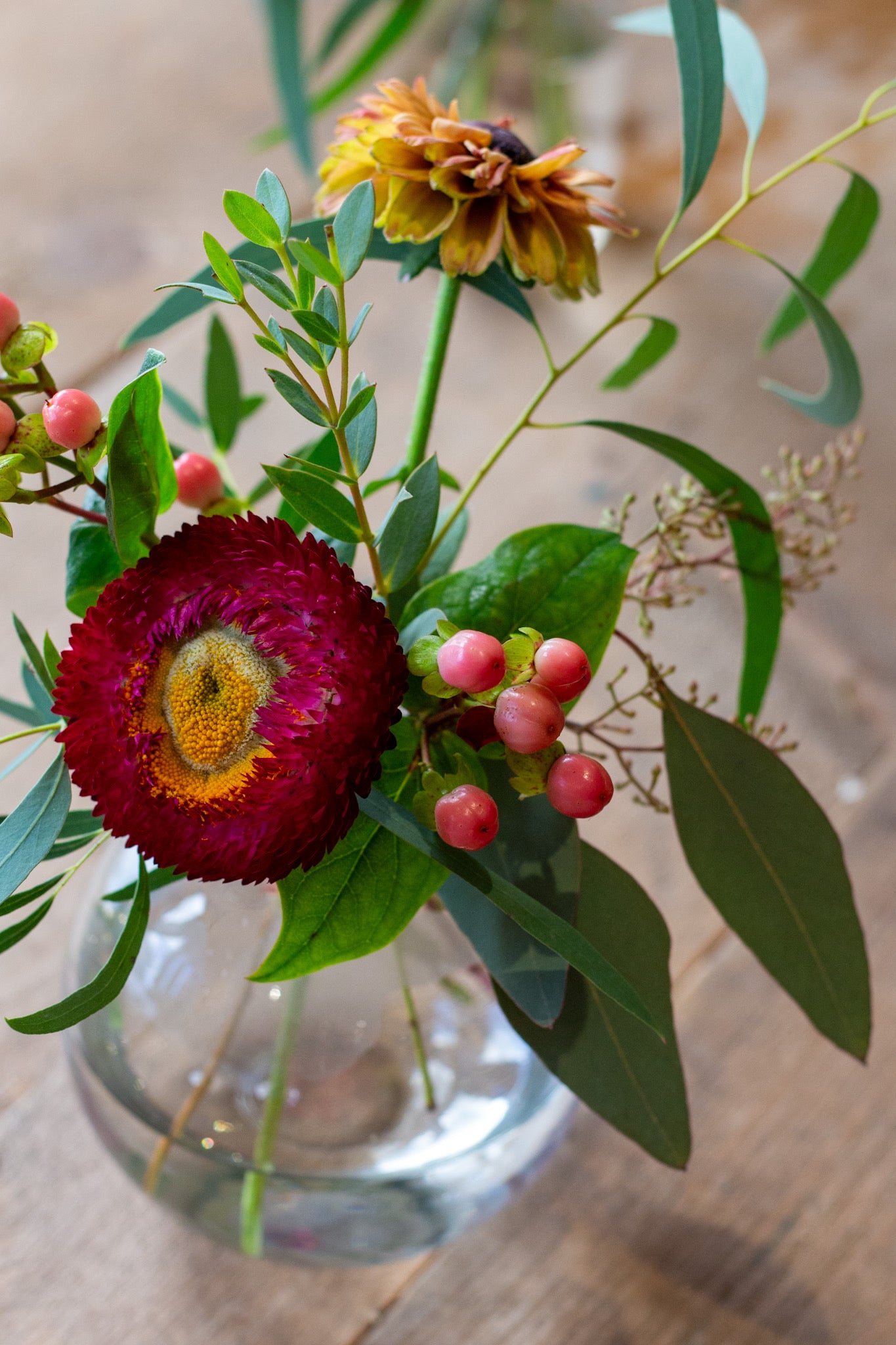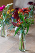 We use a selection of bud vases in varying shapes and sizes. Average size is 10cm x 5cm vase size.