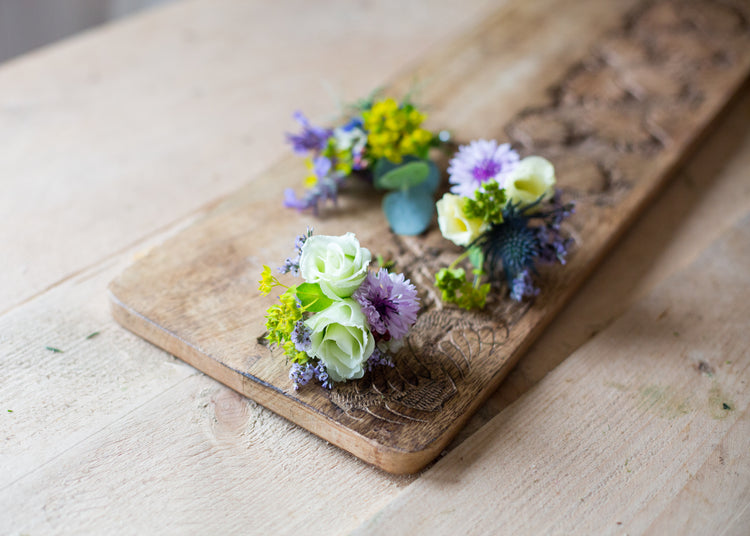 We use long lasting stems that won't wilt during the course of the day for our buttonholes and corsages.